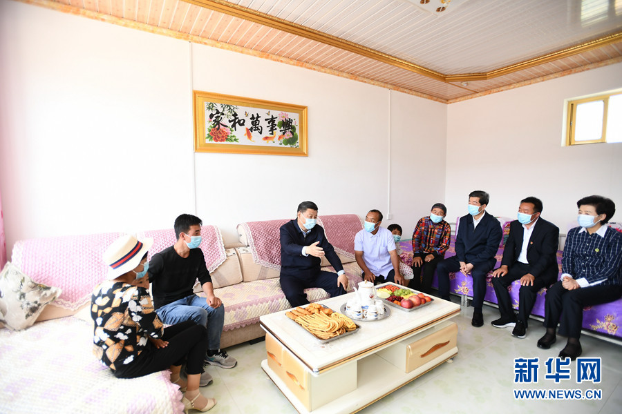 6月8日至10日,中共中央總書記、國家主席、中央軍委主席習(xí)近平在寧夏考察。這是6月8日下午,習(xí)近平在吳忠市紅寺堡區(qū)紅寺堡鎮(zhèn)弘德村看望移民搬遷群眾,向村民們揮手致意。 新華社記者 謝環(huán)馳 攝 新華社銀川6月10日電 中共中央總書記、國家主席、中央軍委主席習(xí)近平近日在寧夏考察時強調(diào),要全面落實黨中央決策部署,堅持穩(wěn)中求進工作總基調(diào),堅持新發(fā)展理念,落實全國“兩會”工作部署,堅決打好三大攻堅戰(zhàn),扎實做好“六穩(wěn)”工作,全面落實“六?!比蝿?wù),努力克服新冠肺炎疫情帶來的不利影響,優(yōu)先穩(wěn)就業(yè)保民生,決勝全面建成小康社會,決戰(zhàn)脫貧攻堅,繼續(xù)建設(shè)經(jīng)濟繁榮、民族團結(jié)、環(huán)境優(yōu)美、人民富裕的美麗新寧夏。 夏日炎炎,塞上江南天高云淡,草木蔥蘢。6月8日至10日,習(xí)近平在寧夏回族自治區(qū)黨委書記陳潤兒、自治區(qū)政府主席咸輝陪同下,先后來到吳忠、銀川等地,深入農(nóng)村、社區(qū)、防洪工程、農(nóng)業(yè)產(chǎn)業(yè)園區(qū)等,就統(tǒng)籌推進常態(tài)化疫情防控和經(jīng)濟社會發(fā)展工作、鞏固脫貧攻堅成果、加強生態(tài)環(huán)境保護、推動民族團結(jié)進步進行調(diào)研。 6月8日至10日,中共中央總書記、國家主席、中央軍委主席習(xí)近平在寧夏考察。這是6月8日下午,習(xí)近平在吳忠市紅寺堡區(qū)紅寺堡鎮(zhèn)弘德村扶貧車間,同正在加工制作紙箱的村民交流。 新華社記者 鞠鵬 攝 吳忠市紅寺堡區(qū)紅寺堡鎮(zhèn)弘德村是生態(tài)移民村,有建檔立卡貧困戶1036戶4497人,目前還有20戶50人未脫貧。8日下午,習(xí)近平首先來到弘德村考察脫貧攻堅工作。在村扶貧車間院內(nèi),他聽取了寧夏以及弘德村脫貧攻堅情況介紹。走進扶貧車間,習(xí)近平同正在加工制作紙箱的村民們親切交流。鄉(xiāng)親們告訴總書記,村里引入企業(yè)從事紙箱包裝業(yè)務(wù),解決了一百多人就業(yè)問題。習(xí)近平表示肯定。他指出,興辦扶貧車間目的是扶貧,要堅持扶貧性質(zhì),向困難群眾傾斜,多招收困難群眾就業(yè)。鄉(xiāng)親們在家門口就業(yè),雖然收入不比進城務(wù)工高,但省去了住宿、伙食、交通等費用,還能照顧家庭,一舉多得。企業(yè)參與興辦扶貧車間,體現(xiàn)了先富帶后富,很有意義。 6月8日至10日,中共中央總書記、國家主席、中央軍委主席習(xí)近平在寧夏考察。這是6月8日下午,習(xí)近平在吳忠市紅寺堡區(qū)紅寺堡鎮(zhèn)弘德村察看回族村民劉克瑞家院落。 新華社記者 謝環(huán)馳 攝 隨后,習(xí)近平步行察看村容村貌。在回族村民劉克瑞家,他仔細看院落、客廳、臥室、廚房、牛棚,詳細了解家庭就業(yè)、收入、看病、社保等情況。劉克瑞告訴總書記,家里的耕地流轉(zhuǎn)了,還養(yǎng)了3頭肉牛,兒子兒媳在附近紡織廠打工,2017年全家脫貧,生活越來越好,鄉(xiāng)親們打心底里感到黨的政策好,真切感受到共產(chǎn)黨親。習(xí)近平詢問劉克瑞老兩口還有什么困難、對今后的日子有什么打算。習(xí)近平強調(diào),鄉(xiāng)親們搬遷后,更好生活還在后頭。希望鄉(xiāng)親們百尺竿頭、更進一步,發(fā)揮自身積極性、主動性、創(chuàng)造性,用自己的雙手創(chuàng)造更加美好的新生活。 6月8日至10日,中共中央總書記、國家主席、中央軍委主席習(xí)近平在寧夏考察。這是6月8日下午,習(xí)近平在吳忠市紅寺堡區(qū)紅寺堡鎮(zhèn)弘德村,同回族村民劉克瑞一家親切交流。 新華社記者 謝環(huán)馳 攝 離開村子時,村民們紛紛趕到村口,歡送總書記。習(xí)近平向大家揮手致意,祝愿鄉(xiāng)親們生活幸福。 6月8日至10日,中共中央總書記、國家主席、中央軍委主席習(xí)近平在寧夏考察。這是6月8日下午,習(xí)近平在黃河吳忠濱河大道古城灣砌護段,察看黃河生態(tài)治理保護狀況。 新華社記者 鞠鵬 攝 習(xí)近平高度重視黃河流域生態(tài)保護和高質(zhì)量發(fā)展。他來到黃河吳忠濱河大道古城灣砌護段,沿岸邊步道,察看黃河生態(tài)治理保護狀況,聽取黃河寧夏段生態(tài)保護治理和水利工程建設(shè)情況匯報。習(xí)近平指出,黃河是中華民族的母親河,是中華民族和中華文明賴以生存發(fā)展的寶貴資源。自古以來,黃河水滋養(yǎng)著寧夏這片美麗富饒的土地,今天仍在造福寧夏各族人民。寧夏要有大局觀念和責(zé)任擔(dān)當(dāng),更加珍惜黃河,精心呵護黃河,堅持綜合治理、系統(tǒng)治理、源頭治理,明確黃河保護紅線底線,統(tǒng)籌推進堤防建設(shè)、河道整治、灘區(qū)治理、生態(tài)修復(fù)等重大工程,守好改善生態(tài)環(huán)境生命線。 6月8日至10日,中共中央總書記、國家主席、中央軍委主席習(xí)近平在寧夏考察。這是6月8日下午,習(xí)近平在吳忠市利通區(qū)金花園社區(qū)黨群活動服務(wù)中心,同社區(qū)志愿者代表親切交談。 新華社記者 鞠鵬 攝 6月8日至10日,中共中央總書記、國家主席、中央軍委主席習(xí)近平在寧夏考察。這是6月8日下午,習(xí)近平在吳忠市利通區(qū)金花園社區(qū)考察民族團結(jié)社區(qū)創(chuàng)建工作情況。 新華社記者 謝環(huán)馳 攝 6月8日至10日,中共中央總書記、國家主席、中央軍委主席習(xí)近平在寧夏