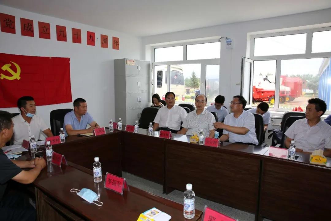 在興隆鄉(xiāng)新建村,焦開河聽取了大崗村、新發(fā)村和新建村關(guān)于農(nóng)機(jī)服務(wù)隊(duì)項(xiàng)目運(yùn)行情況、收益和減貧的情況介紹,詳細(xì)了解了項(xiàng)目幫扶機(jī)制及未來發(fā)展想法。焦開河表示,農(nóng)機(jī)服務(wù)隊(duì)不僅實(shí)現(xiàn)了對貧困戶的幫扶,還可以通過創(chuàng)收、維護(hù)、解決就業(yè),帶動農(nóng)業(yè)機(jī)械化發(fā)展,是一個可持續(xù)項(xiàng)目。他強(qiáng)調(diào),下一步要整合好各村農(nóng)機(jī)服務(wù)隊(duì),實(shí)現(xiàn)更大規(guī)模的連片種植。焦開河專門叮囑集團(tuán)公司派駐大崗村第一書記吳寶明,要充分發(fā)揮駐村第一書記作用,抓好黨建工作,積極培育致富帶頭人,為大崗村后續(xù)發(fā)展奠定好基礎(chǔ)。