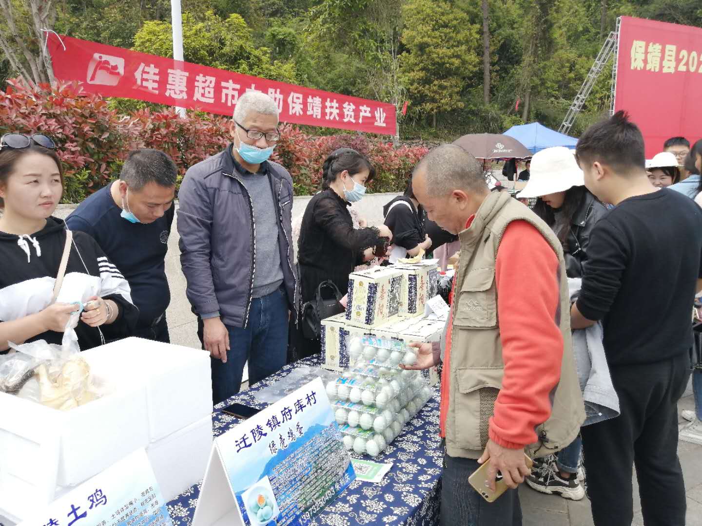 朱利慶帶著村特色養(yǎng)殖府庫綠殼土雞蛋亮相當(dāng)?shù)厥袌?chǎng)