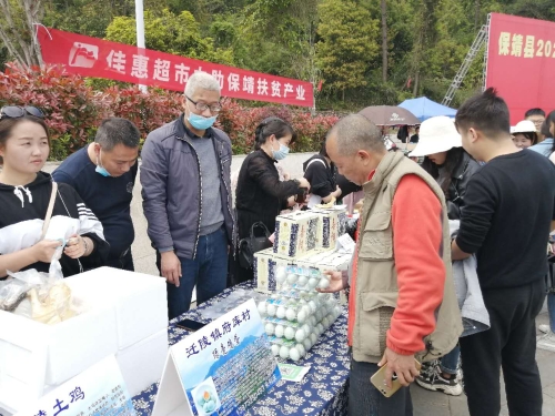 第一步便是養(yǎng)殖江漢綠殼雞,販賣綠殼土雞蛋?!傲窒伦匀环硼B(yǎng),生態(tài)自由采食,原生態(tài)富硒綠殼土雞蛋,1.5元/個(gè),走過的路過的不要錯(cuò)過啊……”這是朱利慶于“保靖縣2020年消費(fèi)扶貧愛心認(rèn)購活動(dòng)”上的推銷廣告詞。2020年4月9日,駐村工作隊(duì)又一次成功地把村集體經(jīng)濟(jì),特色養(yǎng)殖——府庫綠殼土雞蛋推向了當(dāng)?shù)厥袌?chǎng),此次展銷會(huì)共現(xiàn)場(chǎng)銷售2720個(gè)雞蛋,村集體當(dāng)天收入4080元并與多家單位洽談了長期意向銷售。工作隊(duì)又購進(jìn)8000羽綠殼蛋雞苗,以此進(jìn)一步擴(kuò)大養(yǎng)殖規(guī)格,帶動(dòng)老百姓一起增收。
