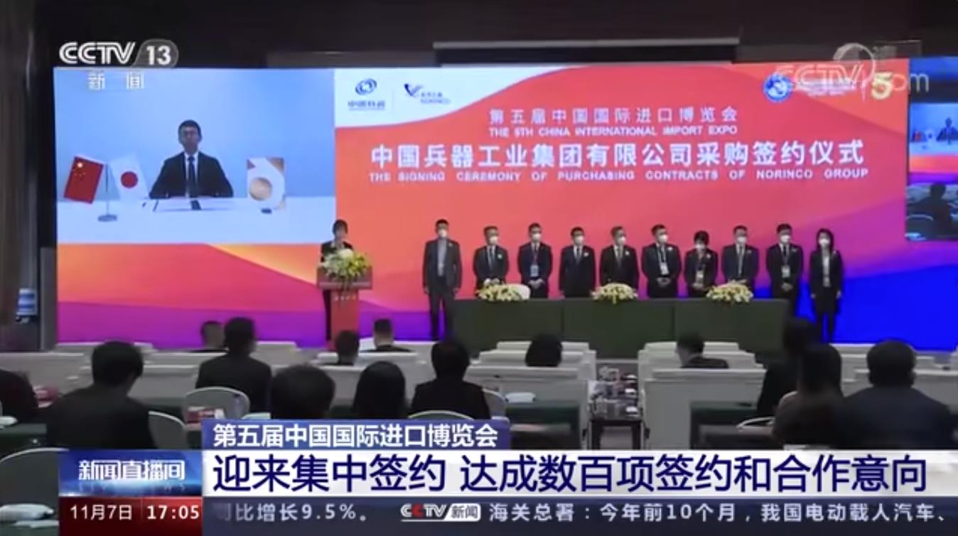 央視新聞?lì)l道《新聞直播間》:第五屆中國(guó)國(guó)際進(jìn)口博覽會(huì) 迎來(lái)集中簽約 達(dá)成數(shù)百項(xiàng)簽約和合作意向