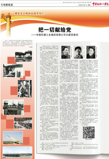 1月6日,貫徹落實(shí)中央企業(yè)黨的建設(shè)工作座談會(huì)精神專題推進(jìn)會(huì)在京召開。會(huì)上,中國(guó)兵器工業(yè)集團(tuán)有限公司等5家單位作了“賡續(xù)央企精神血脈”主題宣講報(bào)告。3月21日,《中國(guó)組織人事報(bào)》刊發(fā)賡續(xù)央企精神血脈系列之一——《把一切獻(xiàn)給黨——中國(guó)兵器工業(yè)集團(tuán)有限公司主題宣講詞》。