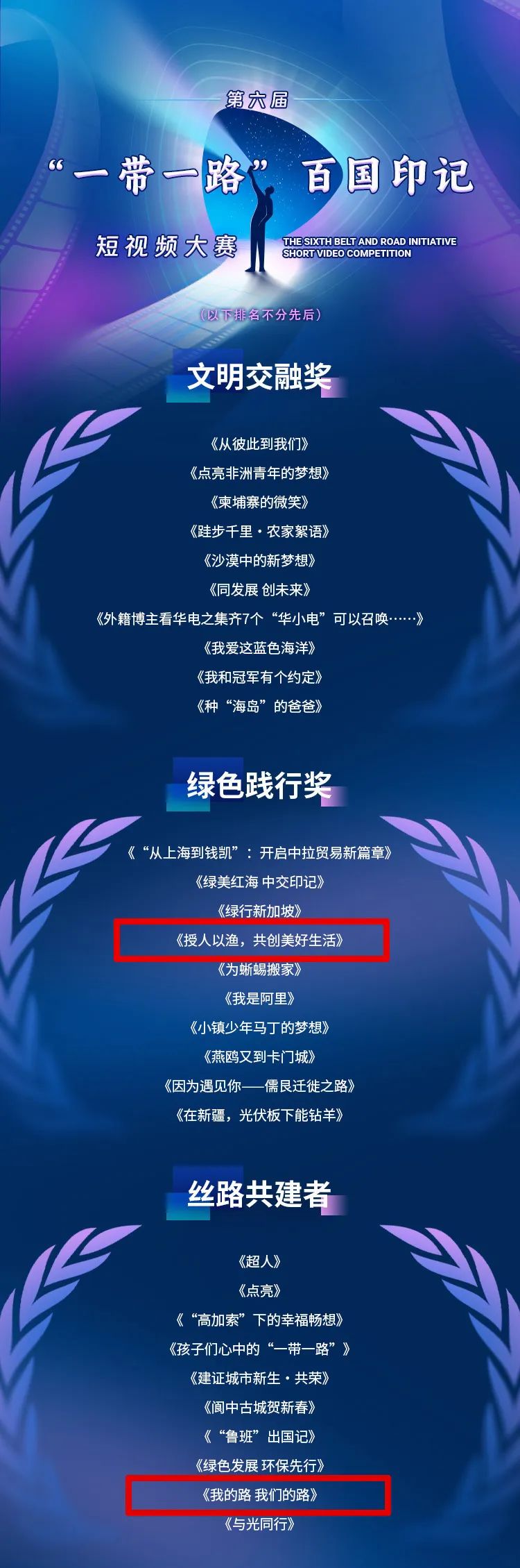 近日,由中國公共外交協(xié)會(huì)主辦,國務(wù)院國資委新聞中心等單位協(xié)辦的第六屆“一帶一路”百國印記短視頻大賽獲獎(jiǎng)名單正式揭曉,經(jīng)過激烈角逐,共有108部作品脫穎而出,中國兵器工業(yè)集團(tuán)北方公司兩部作品獲獎(jiǎng),其中,北方礦業(yè)《授人以漁,共創(chuàng)美好生活》榮獲“綠色踐行獎(jiǎng)”,北方國際《我的路 我們的路》榮獲“絲路共建者”。