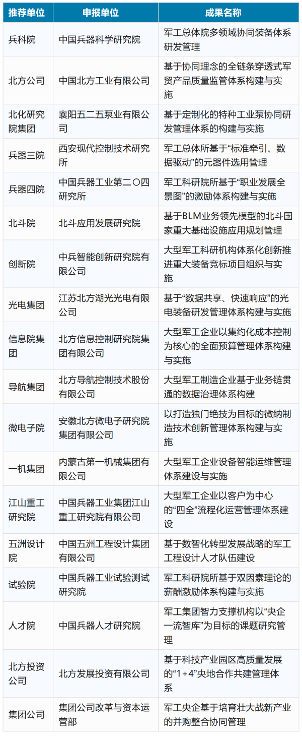 兵器工業(yè)集團2025年度管理創(chuàng)新成果獲獎名單發(fā)布 |