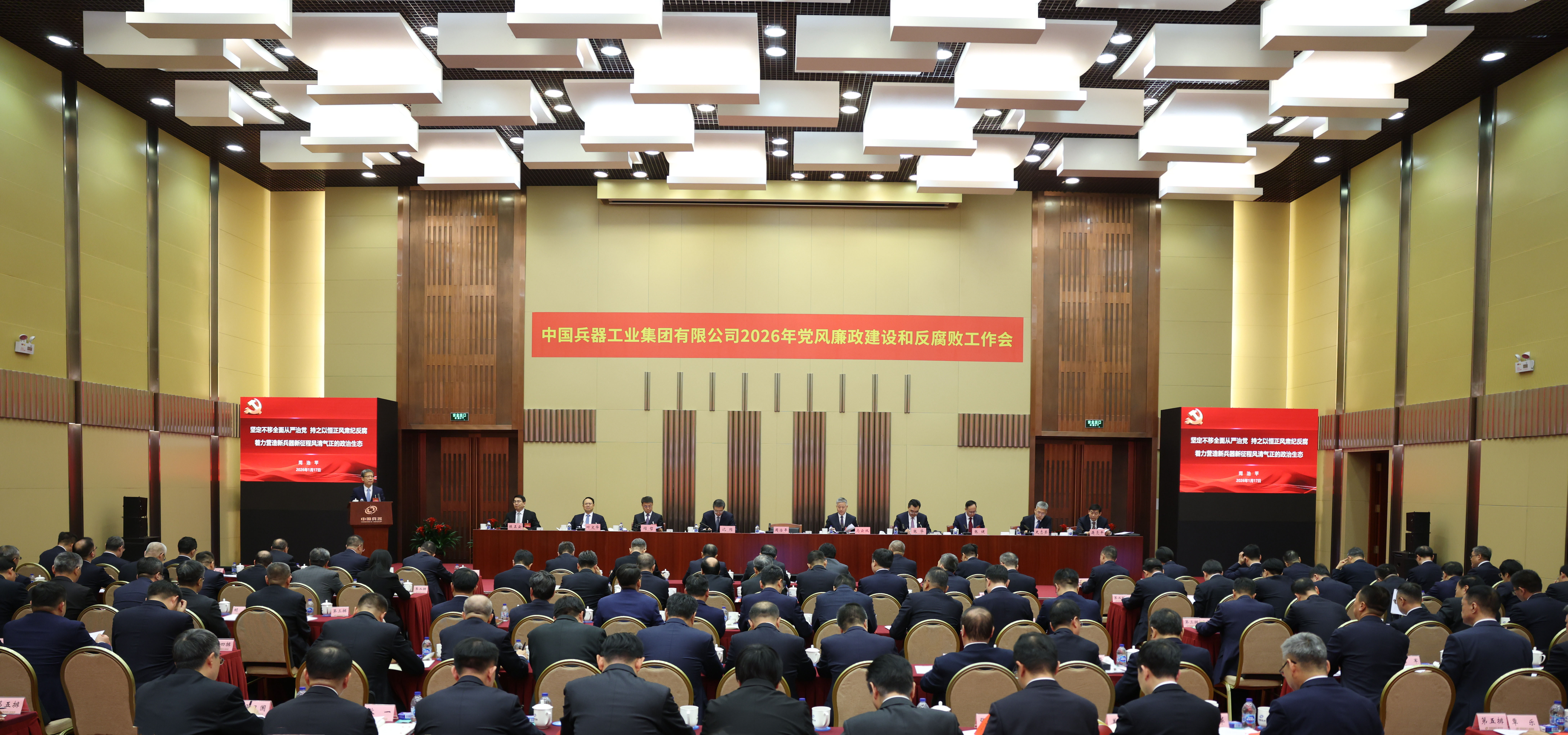 1月17日,中國兵器工業(yè)集團(tuán)有限公司召開2026年黨風(fēng)廉政建設(shè)和反腐敗工作會議,會議以習(xí)近平新時代中國特色社會主義思想為指導(dǎo),深入學(xué)習(xí)貫徹黨的二十大和二十屆四中全會精神,全面貫徹落實(shí)二十屆中央紀(jì)委五次全會精神,總結(jié)工作、部署任務(wù),以更高標(biāo)準(zhǔn)、更實(shí)舉措推進(jìn)全面從嚴(yán)治黨,為實(shí)現(xiàn)集團(tuán)公司“十五五”時期目標(biāo)任務(wù)提供堅(jiān)強(qiáng)保障。集團(tuán)公司黨組書記、董事長周治平作了《堅(jiān)定不移全面從嚴(yán)治黨,持之以恒正風(fēng)肅紀(jì)反腐,著力營造新兵器新征程風(fēng)清氣正的政治生態(tài)》的講話,并與集團(tuán)公司各部門、各子集團(tuán)和直管單位簽訂《黨風(fēng)廉政責(zé)任書》。駐集團(tuán)公司紀(jì)檢監(jiān)察組組長、集團(tuán)公司黨組成員陳正云傳達(dá)了二十屆中央紀(jì)委五次全會精神,通報(bào)了駐集團(tuán)公司紀(jì)檢監(jiān)察組2025年重點(diǎn)工作和查處典型案件暴露出來的問題并提出意見要求。集團(tuán)公司總經(jīng)理、黨組副書記馬云雙主持會議。